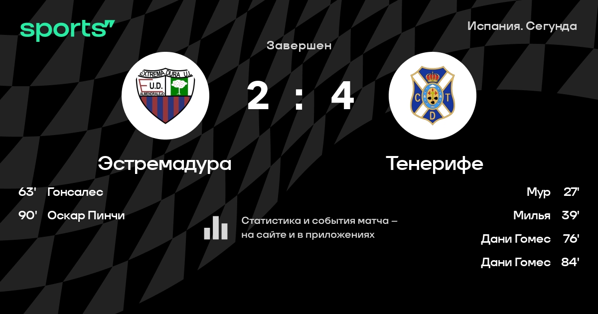 Эстремадура – Тенерифе: коэффициенты