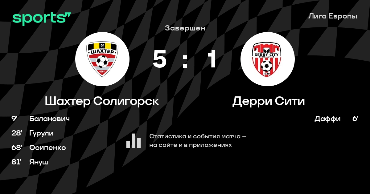 Трансляция Шахтер Солигорск - Дерри Сити