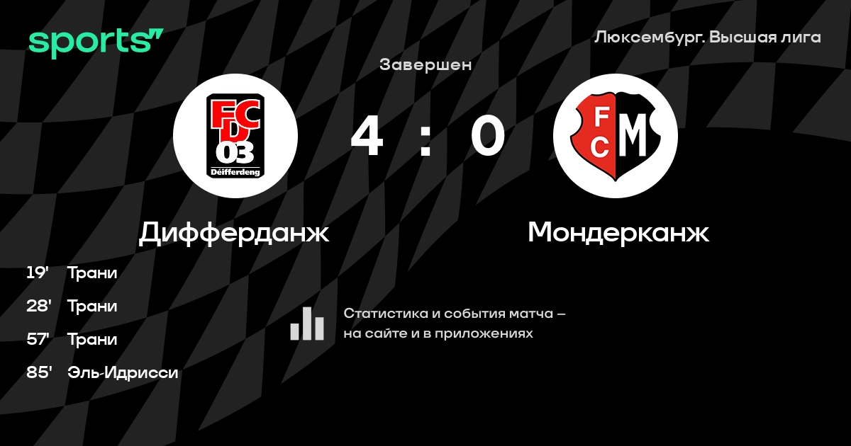 | 1 | Дифферданж | 30 | 25 | 3 | 2 | 69 | 7 | +62 | 78 | ||
