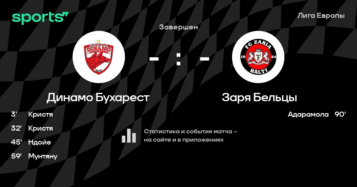 Трансляция Динамо Бухарест - Заря Бельцы