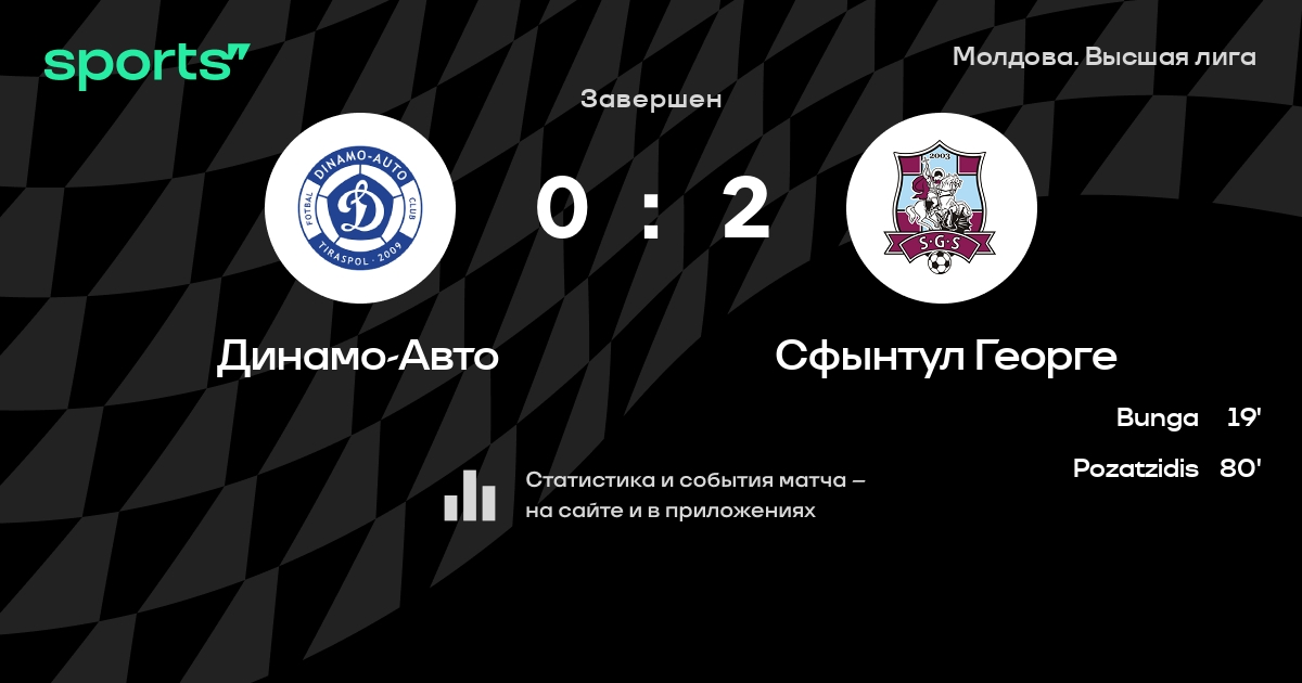 Динамо-Авто – Сфынтул Георге: Сфынтул Георге не пропускает в 3 последних матчах против этого соперника