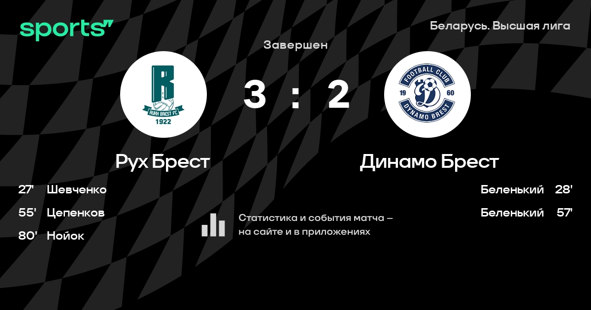 Рух Брест – Динамо Брест: Динамо Брест забивает в 5 последних матчах против этого соперника