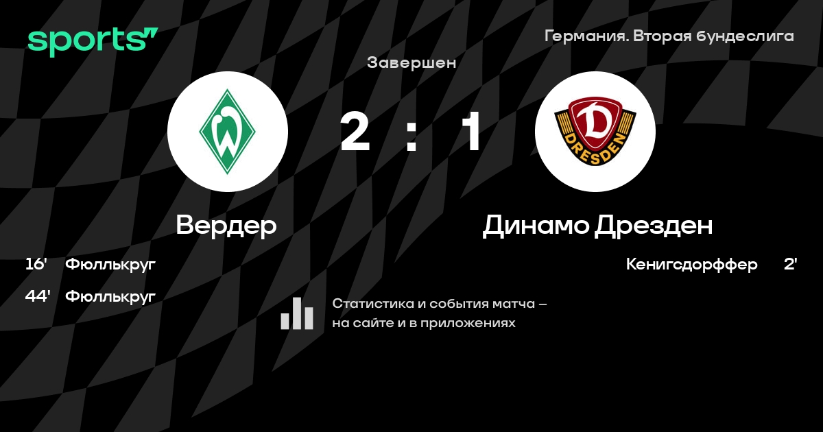 Вердер – Динамо Дрезден: Динамо Дрезден не проигрывает в 5 из 7 последних матчей против этого соперника