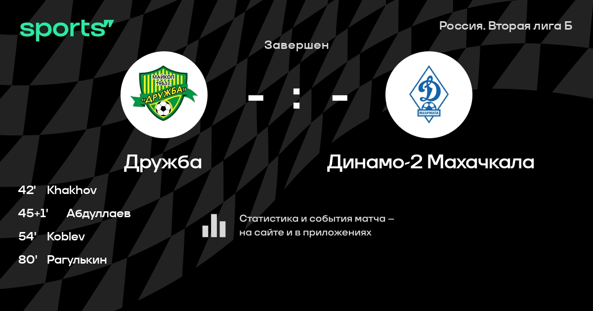 Результат прошлой игры в турнире «Вторая лига»: Сочи-2 – Дружба 0:0. После 26 туров Дружба набирает 37 очков и занимает 8 место в турнире. Дружба не может выиграть в 4 последних матчах в рамках турнира «Вторая лига». В последних 5 играх Дружба забивает 5 голов. В последних 5 играх Дружба пропускает 6 голов.