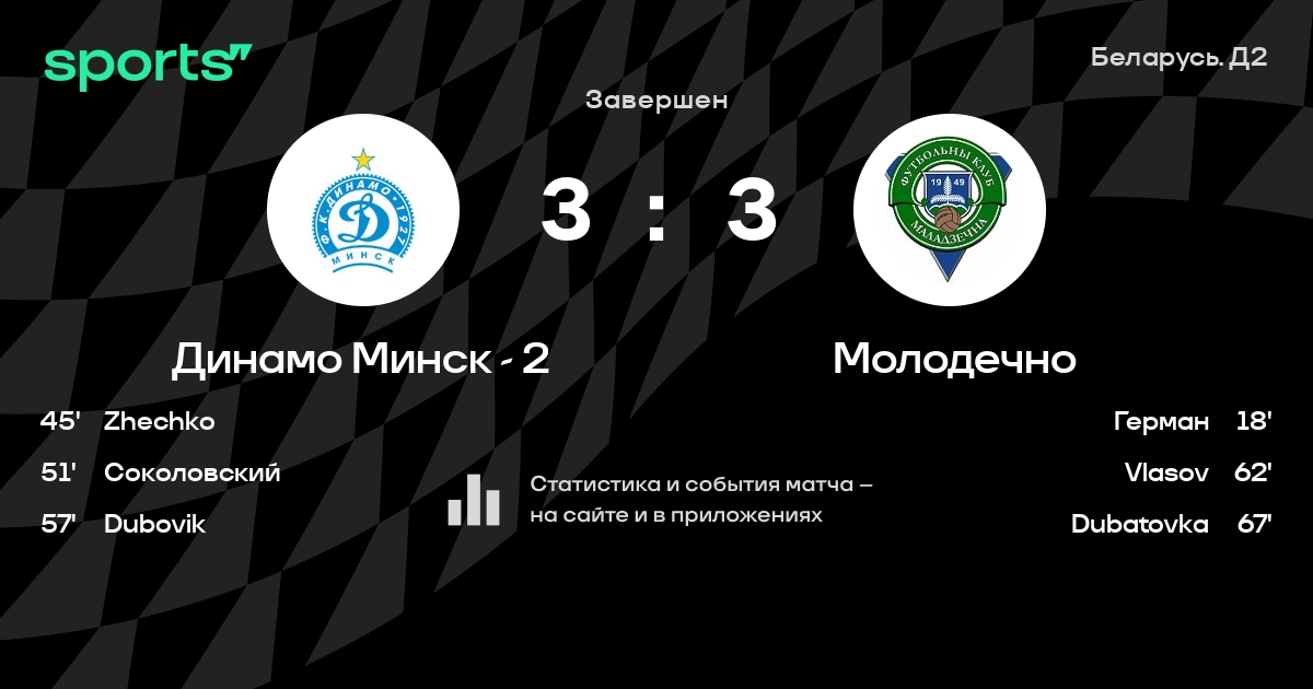 Динамо Минск - 2 – Молодечно: коэффициенты