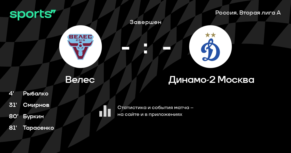 Трансляция Велес - Динамо-2 Москва