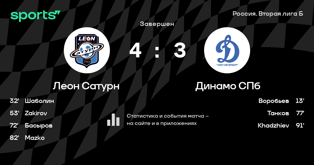 Леон Сатурн – Динамо СПб: коэффициенты