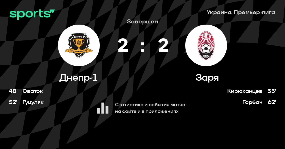 Днепр-1 – Заря: Днепр-1 забивает в 3 последних матчах против этого соперника