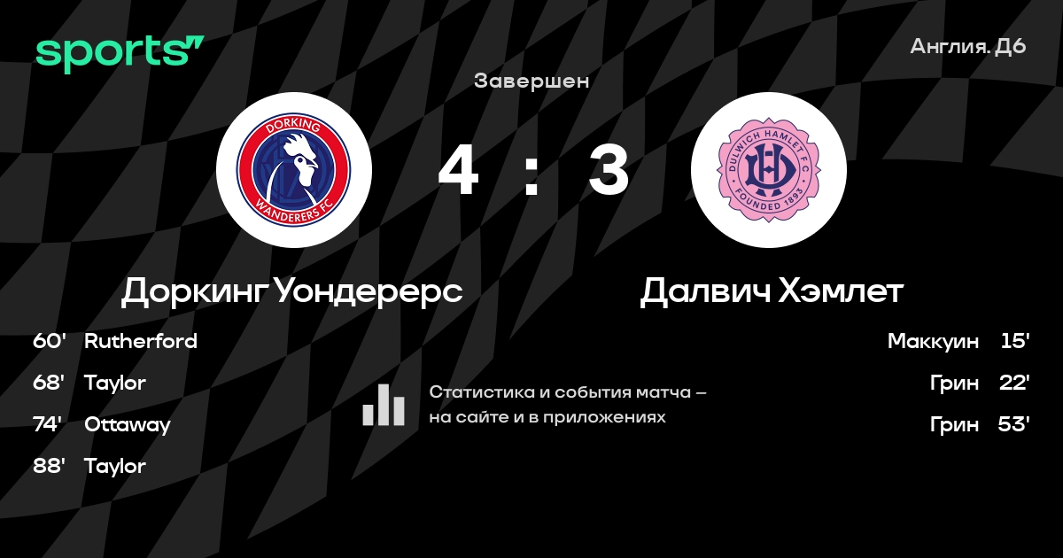 Доркинг Уондерерс – Далвич Хэмлет: коэффициенты