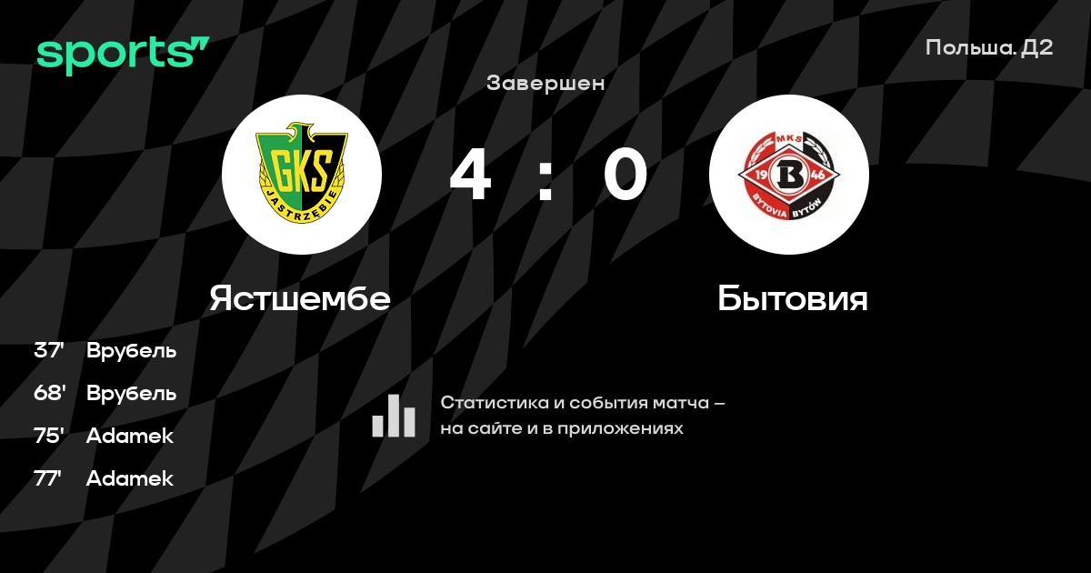 | 5 | Ястшембе | 34 | 12 | 12 | 10 | 43 | 38 | +5 | 48 | ||