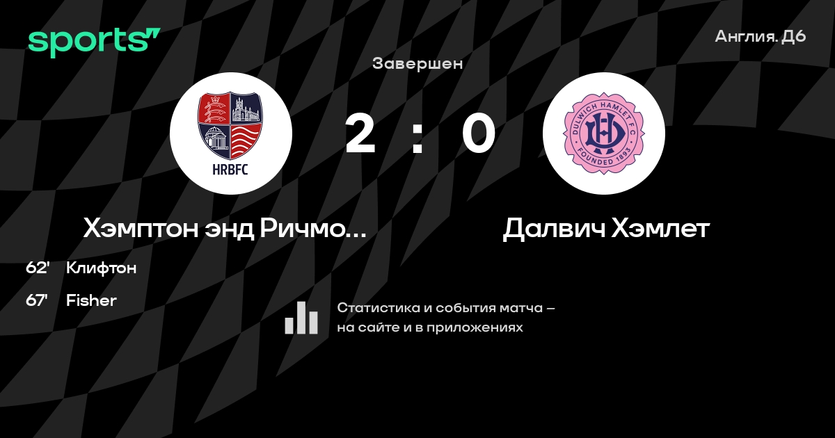 Хэмптон энд Ричмонд – Далвич Хэмлет: Далвич Хэмлет забивает в 6 последних матчах против этого соперника