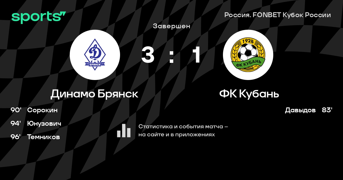Динамо Брянск – Кубань: Кубань побеждает в 5 последних очных матчах