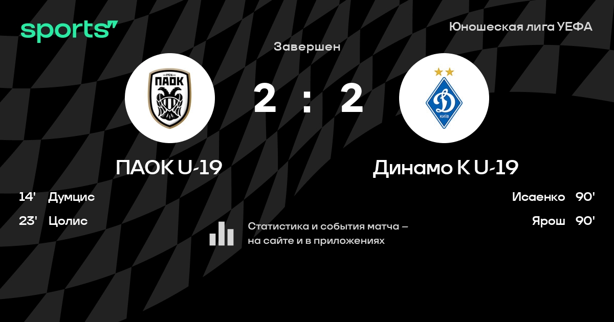 ПАОК U-19 - Динамо К U-19: статистика матча