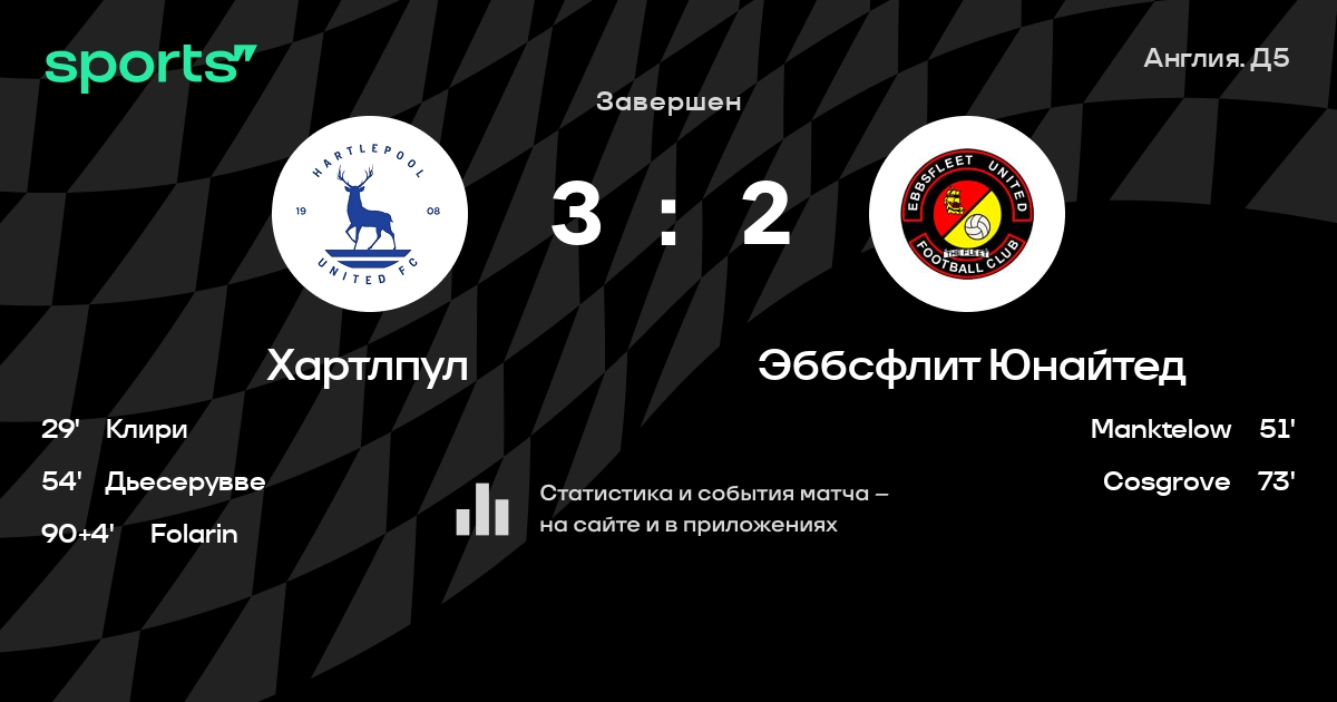 Хартлпул – Эббсфлит Юнайтед: Эббсфлит Юнайтед не проигрывает в 8 из 9 последних матчей против этого соперника