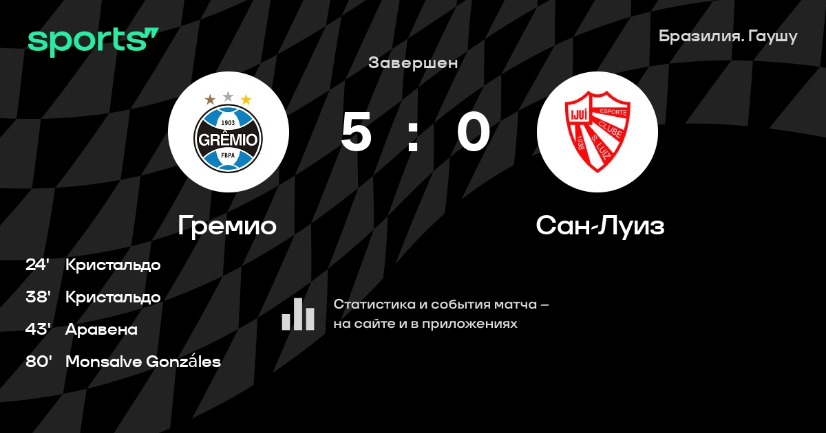 Пауло - Farias Duarte, Бруно Жезус, Тальхаймер, Муриэл - Pinto Ferreira Barbosa, Pinheiro da Silva, Луис Энрике, Gonçalves Sousa, Майкон - Martins de OliveiraЗапасные: Santos Monteiro, Рафаэл Гойяно, Энрике, Lima de Oliveira, Vitorio Schwerz, Гарре, Leite da Silva, Габриэл, Рондинелли