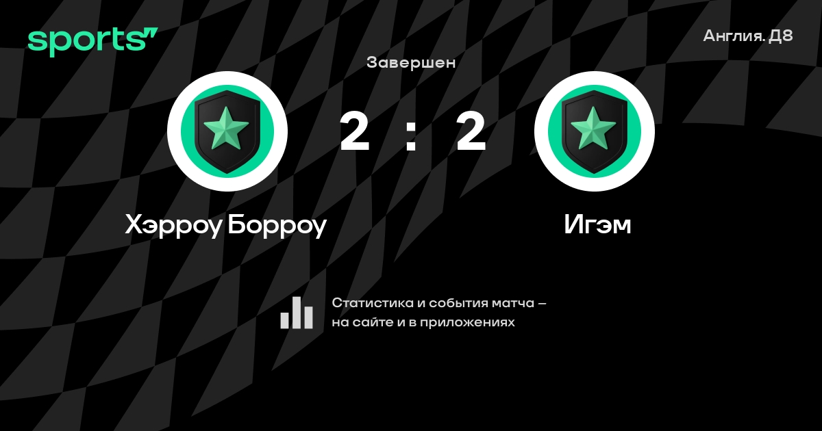 Результат прошлой игры в турнире «Д8. Нон-лиг Дивизион 1»: Литтлхэмптон – Хэрроу Борроу 3:3. После 17 туров Хэрроу Борроу набирает 24 очков и занимает 14 место в турнире. Лучший бомбардир команды – D. Wynter: он забил 2 в 1 матчах. Хэрроу Борроу не может выиграть в 5 последних матчах в рамках турнира «Д8. Нон-лиг Дивизион 1». В 8 последних матчах в турнире «Д8. Нон-лиг Дивизион 1» Хэрроу Борроу обязательно забивает. Хэрроу Борроу пропускает в 6 последних матчах в турнире «Д8. Нон-лиг Дивизион 1». В последних 5 играх Хэрроу Борроу забивает 9 голов. В последних 5 играх Хэрроу Борроу пропускает 13 голов.