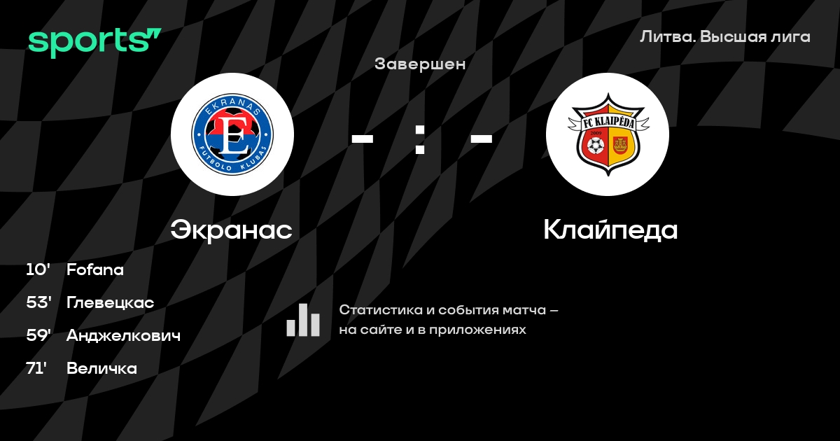 Зубас - Дедура, Мороз, Глевецкас, Самусевас - Лукас Алонсо, Анджелкович, Томкявичюс, Радавичюс, Кучис - FofanaЗапасные: Каунецкас, Рибокас, Уме, Вертелис, Маркявичюс