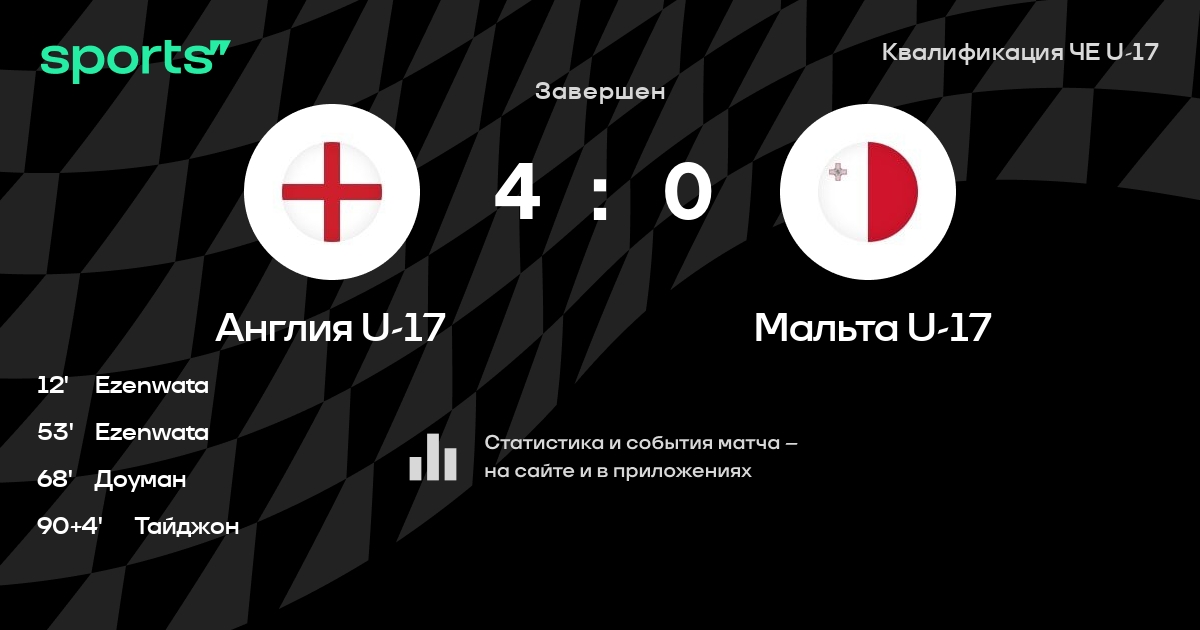 Трансляция Англия U-17 - Мальта U-17