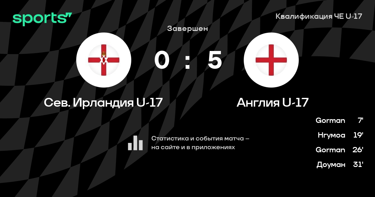 Трансляция Сев. Ирландия U-17 - Англия U-17