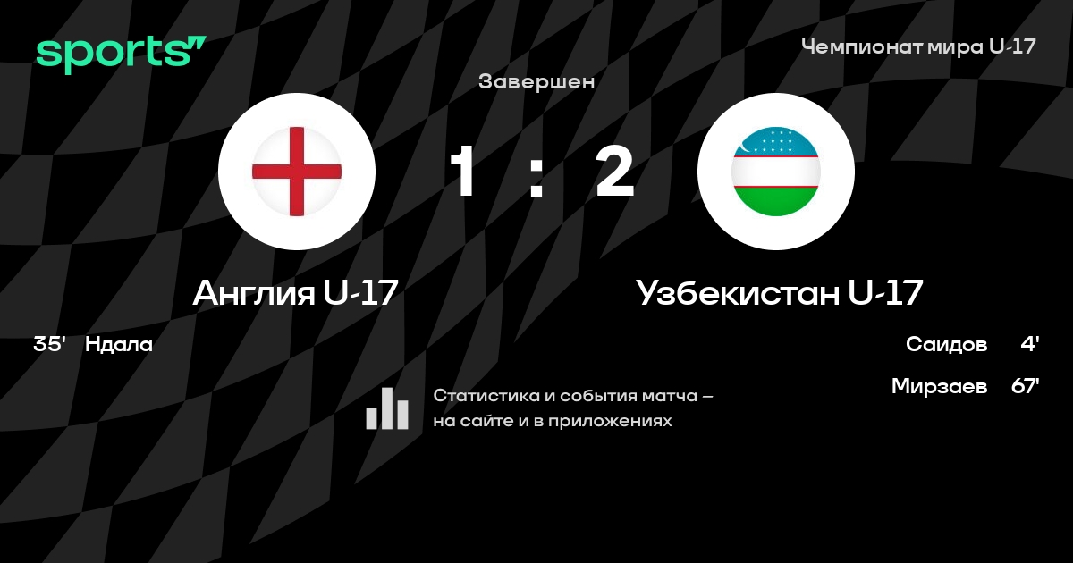 Англия U-17 – Узбекистан U-17: коэффициенты