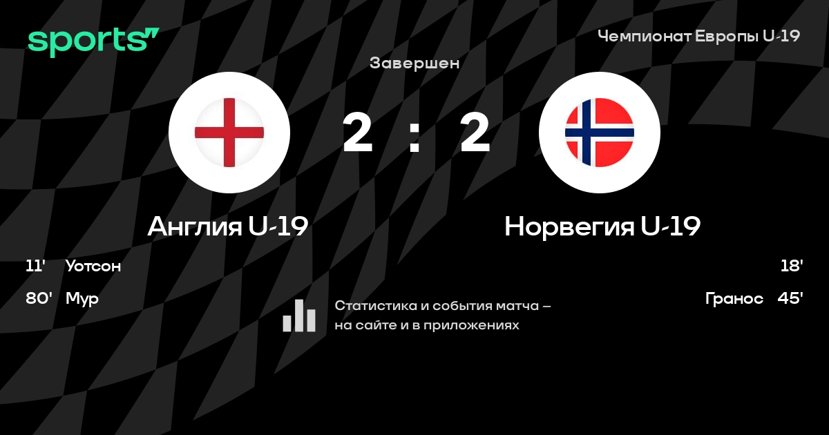 В последних 5 играх Норвегия U-19 забивает в среднем 2.20 гола за игру