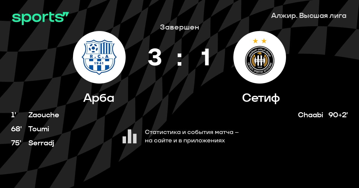 Арба – Сетиф: Сетиф не проигрывает в 7 из 9 последних матчей против этого соперника