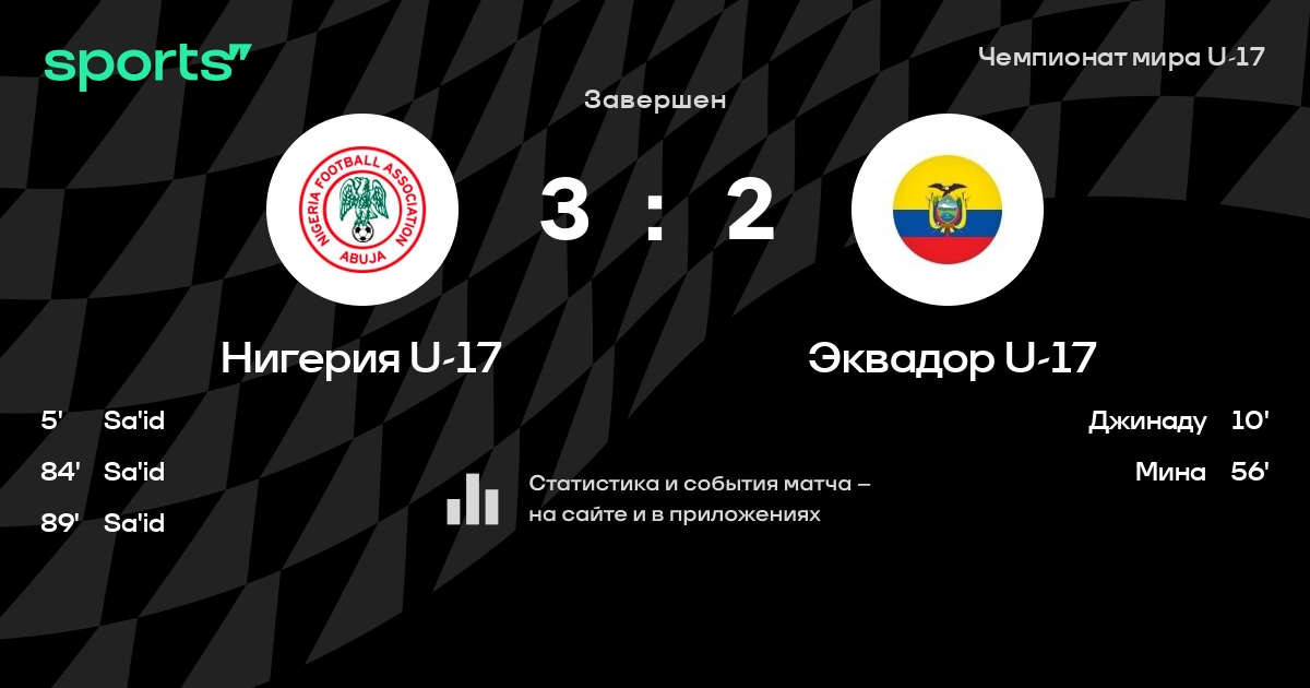 Трансляция Нигерия U-17 - Эквадор U-17