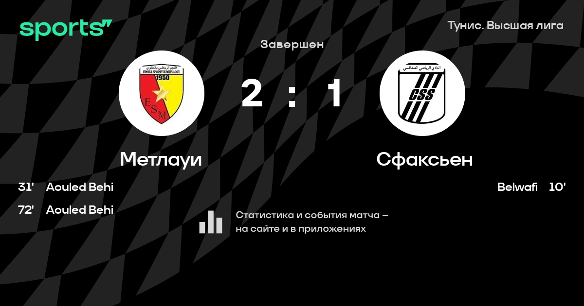 Метлауи – Сфаксьен: Сфаксьен забивает в 3 последних матчах против этого соперника
