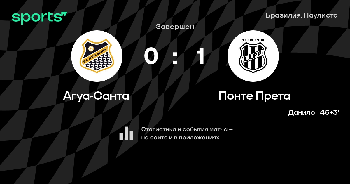 Результат прошлой игры в турнире «Лига Паулиста»: Ботафого-СП – Агуа-Санта 1:1. После 5 туров Агуа-Санта набирает 4 очков и занимает 4 место в турнире. Лучший бомбардир команды – Неилтон: он забил 5 в 17 матчах. В 3 последних матчах в турнире «Лига Паулиста» Агуа-Санта обязательно забивает. В последних 5 играх Агуа-Санта забивает 6 голов. В последних 5 играх Агуа-Санта пропускает 11 голов.