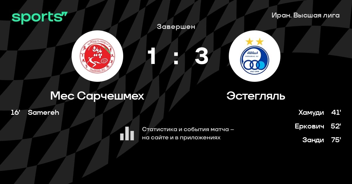 Мес Сарчешмех – Эстегляль: коэффициенты