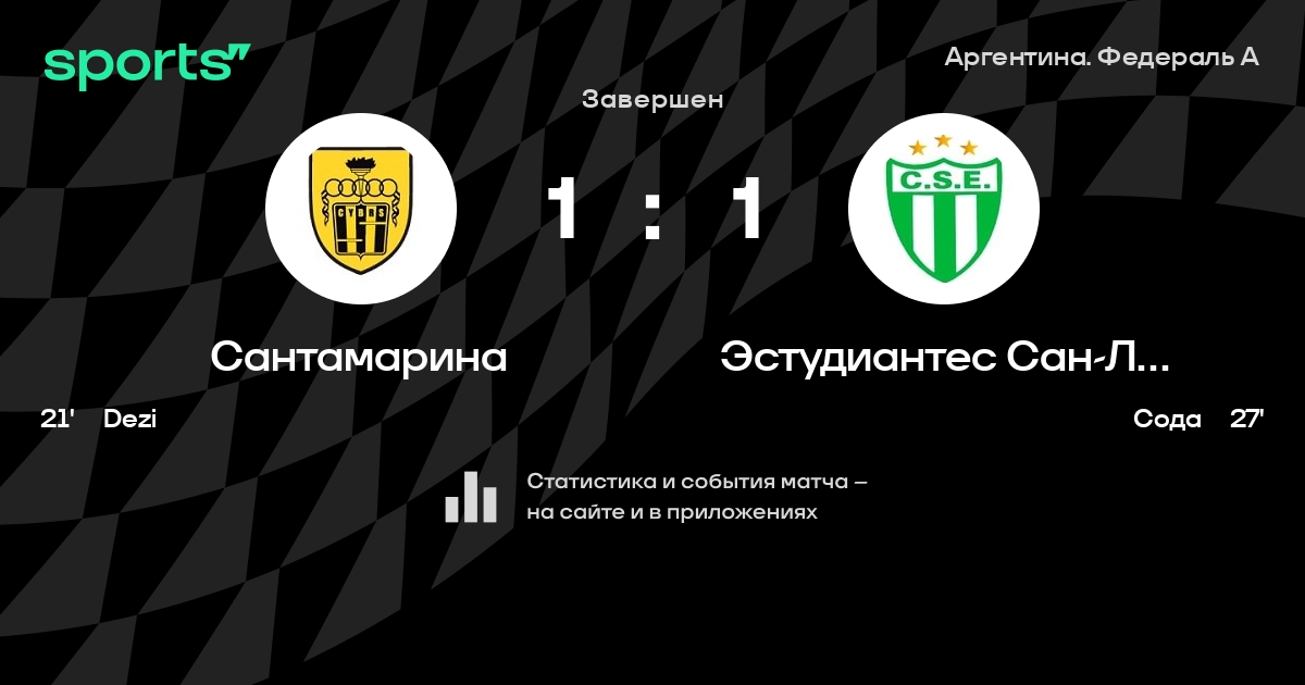Результат прошлой игры в турнире «Торнео Федераль A»: Уракан Лас-Эрас – Сантамарина 1:2. После 18 туров Сантамарина набирает 20 очков и занимает 8 место в турнире. Лучший бомбардир команды – G. Navarro: он забил 2 в 14 матчах. Сантамарина пропускает в 3 последних матчах в турнире «Торнео Федераль A». В последних 5 играх Сантамарина забивает 6 голов. В последних 5 играх Сантамарина пропускает 9 голов.