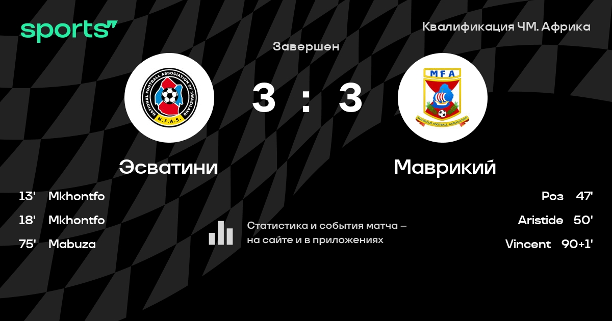 Эсватини не выигрывает в 5 последних матчах в турнире «Квалификация ЧМ. Африка»