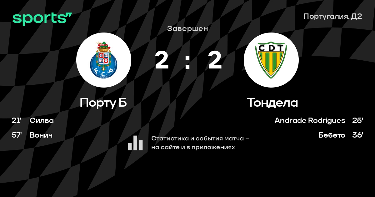 Результат прошлой игры в турнире «Сегунда»: Тондела – Маритиму 0:0. После 18 туров Тондела набирает 33 очков и занимает 3 место в турнире. Лучший бомбардир команды – Роберту: он забил 9 в 15 матчах. Тондела не может выиграть в 4 последних матчах в рамках турнира «Сегунда». Тондела имеет лучшую разницу мячей в турнире – 14. Тондела больше всех забивает в турнире – 34 в 18. В последних 5 играх Тондела забивает 6 голов. В последних 5 играх Тондела пропускает 7 голов.
