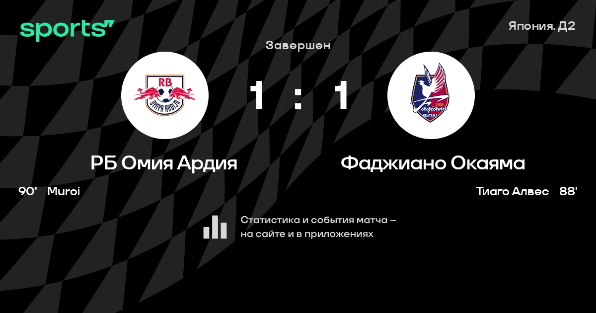 РБ Омия Ардия – Фаджиано Окаяма: коэффициенты