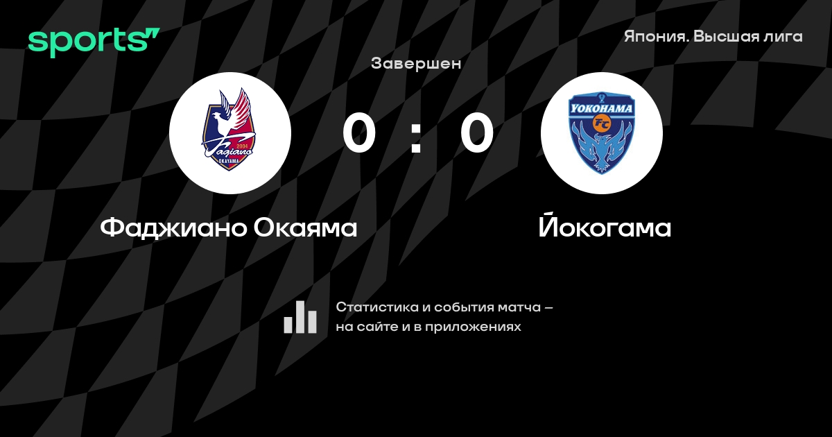 Результат прошлой игры в турнире «Джей-лига 1»: Токио Верди – Фаджиано Окаяма 4:2. После 30 туров Фаджиано Окаяма набирает 39 очков и занимает 12 место в турнире. Лучший бомбардир команды – T. Kimura: он забил 5 в 31 матчах. Фаджиано Окаяма проигрывает в 3 последних матчах в рамках турнира «Джей-лига 1». Фаджиано Окаяма пропускает в 3 последних матчах в турнире «Джей-лига 1». В последних 5 играх Фаджиано Окаяма забивает 5 голов. В последних 5 играх Фаджиано Окаяма пропускает 11 голов.