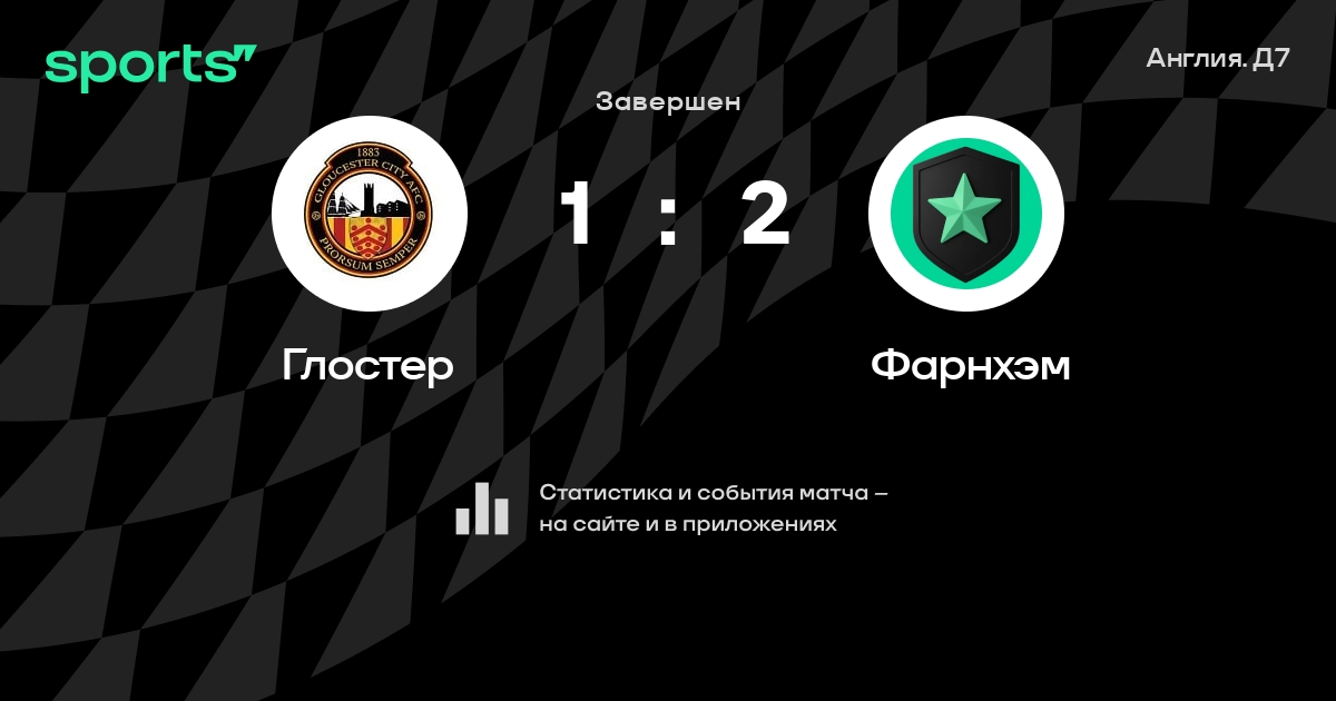 Результат прошлой игры в турнире «Д7. Нон-лиг Премьер-лига»: Глостер – Чертси Таун 2:0. После 17 туров Глостер набирает 39 очков и занимает 2 место в турнире. Лучший бомбардир команды – M. Day: он забил 1 в 1 матчах. Глостер побеждает в 3 последних матчах в рамках турнира «Д7. Нон-лиг Премьер-лига». В 17 последних матчах в турнире «Д7. Нон-лиг Премьер-лига» Глостер обязательно забивает. В последних 5 играх Глостер забивает 11 голов. В последних 5 играх Глостер пропускает 6 голов.
