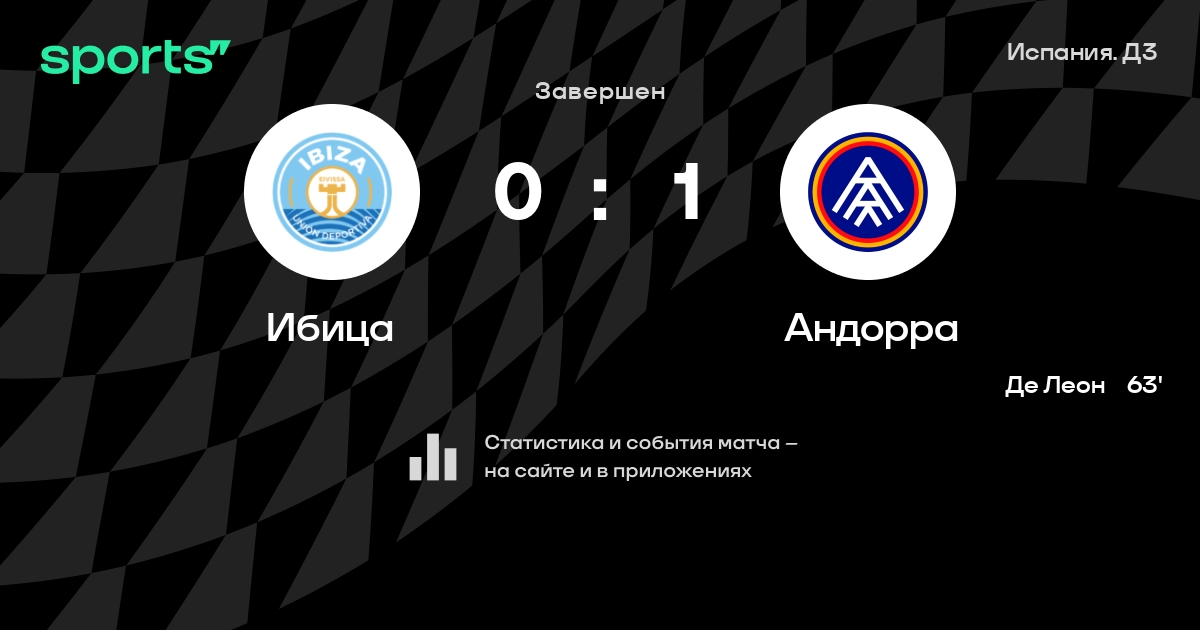 Результат прошлой игры в турнире «Первый дивизион RFEF»: Андорра – Ибица 2:0. В последних 5 играх Ибица забивает 7 голов. В последних 5 играх Ибица пропускает 2 голов.
