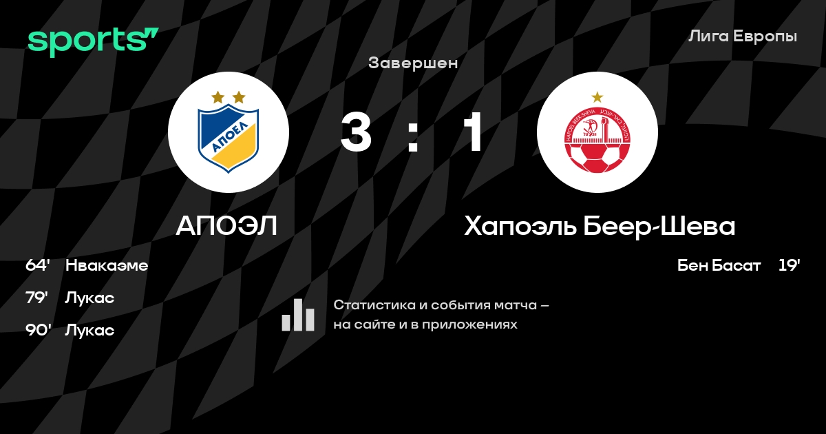Хапоэль Беер Шева - АПОЭЛ 2:2. Теперь в Никосии надо выигрывать