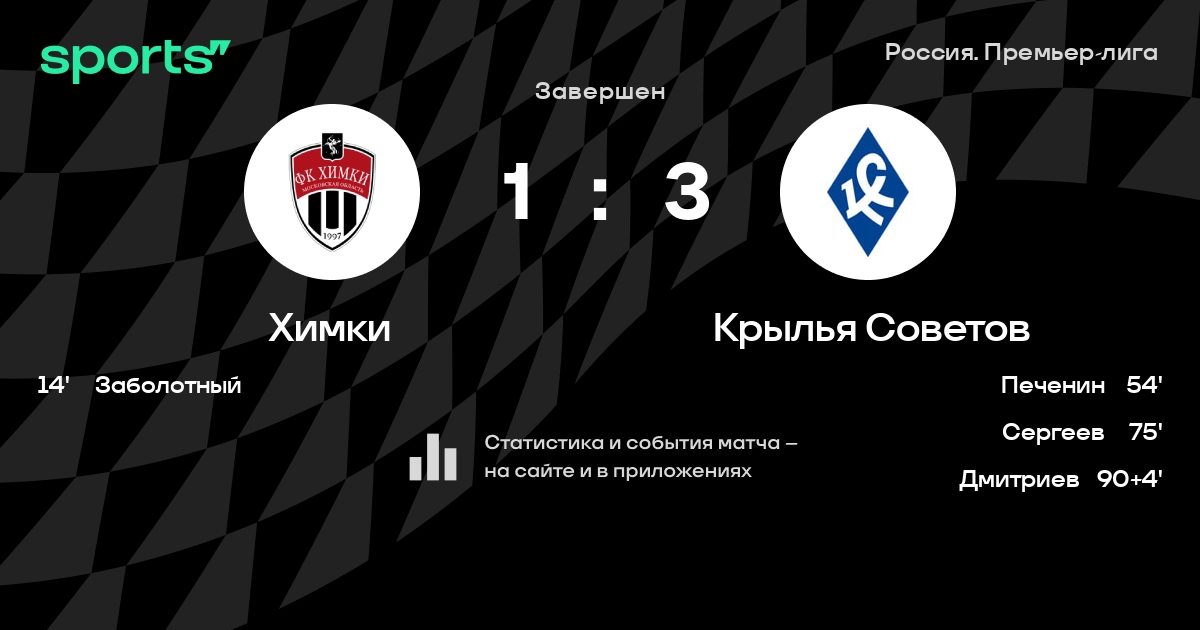 Химки – Крылья Советов: Крылья Советов не пропускает в 3 последних матчах против этого соперника