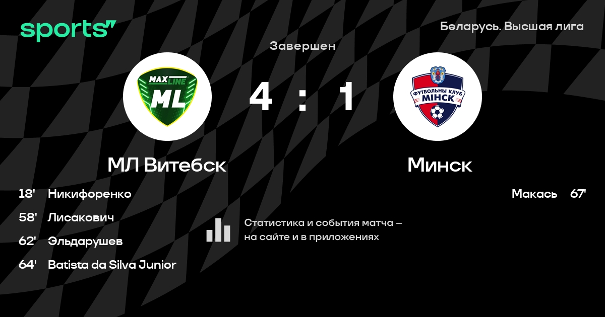 | 1 | МЛ Витебск | 28 | 20 | 4 | 4 | 47 | 17 | +30 | 64 | ||
