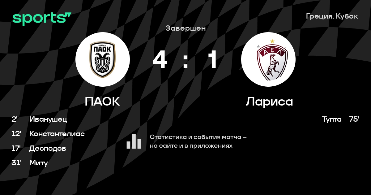 ПАОК – Лариса: ПАОК не проигрывает в 18 последних матчах против этого соперника