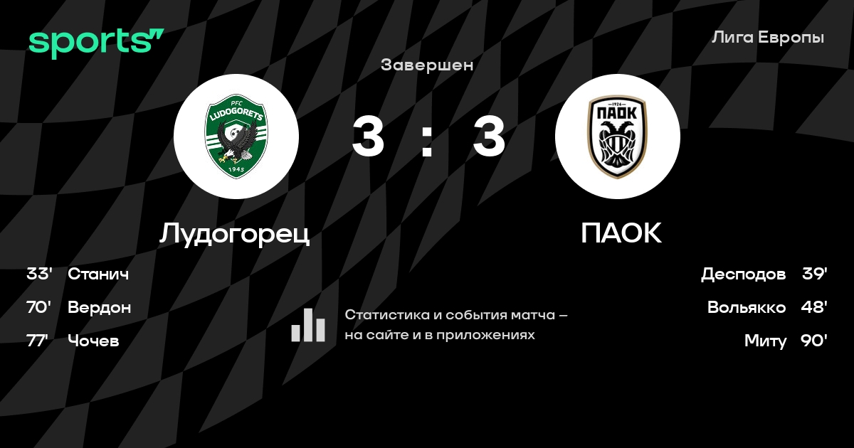 Результат прошлой игры в турнире «Лига Европы»: Лудогорец – Сельта 3:2. После 5 туров Лудогорец набирает 6 очков и занимает 25 место в турнире. Лучший бомбардир команды – Ивайло Чочев: он забил 13 в 25 матчах. В 3 последних матчах в турнире «Лига Европы» Лудогорец обязательно забивает. Лудогорец пропускает в 7 последних матчах в турнире «Лига Европы». В последних 5 играх Лудогорец забивает 10 голов. В последних 5 играх Лудогорец пропускает 3 голов.
