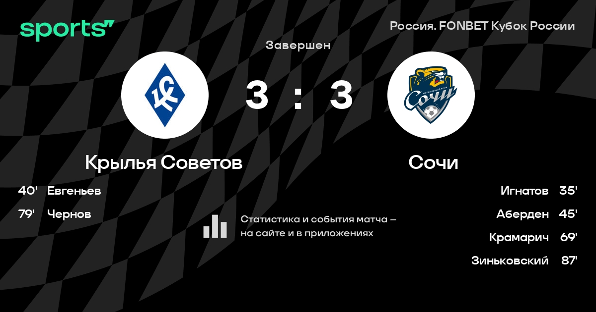 Результат прошлой игры в турнире «FONBET Кубок России»: Крылья Советов – Краснодар 1:2. В последних 5 играх Крылья Советов забивает 8 голов. В последних 5 играх Крылья Советов пропускает 9 голов.