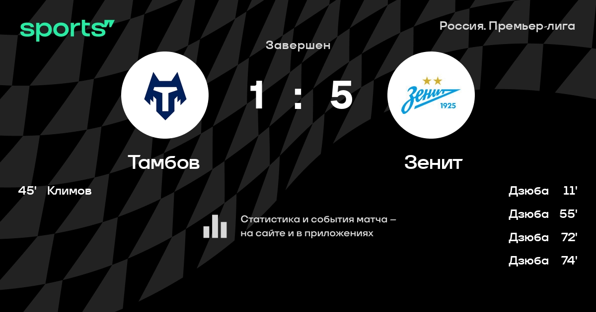 Тамбов – Зенит: Зенит побеждает в 4 последних очных матчах