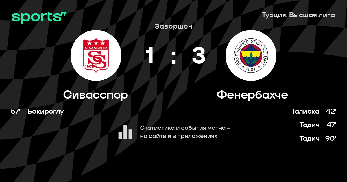 Сивасспор – Фенербахче: Фенербахче не проигрывает в 9 последних матчах против этого соперника