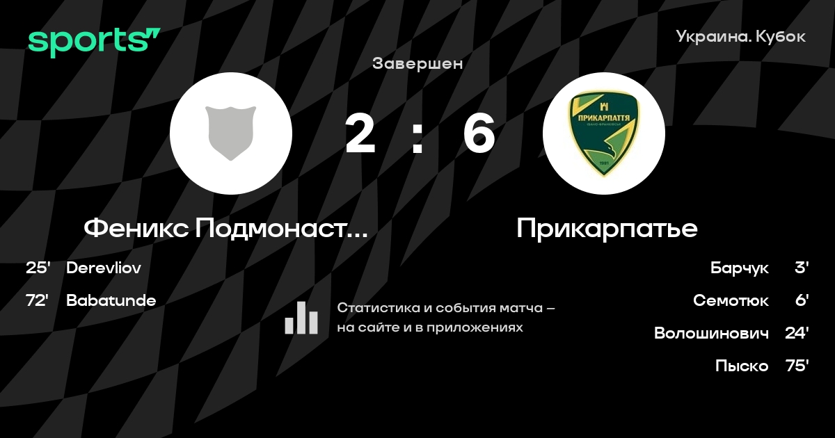 Феникс Подмонастырь - Прикарпатье: статистика матча