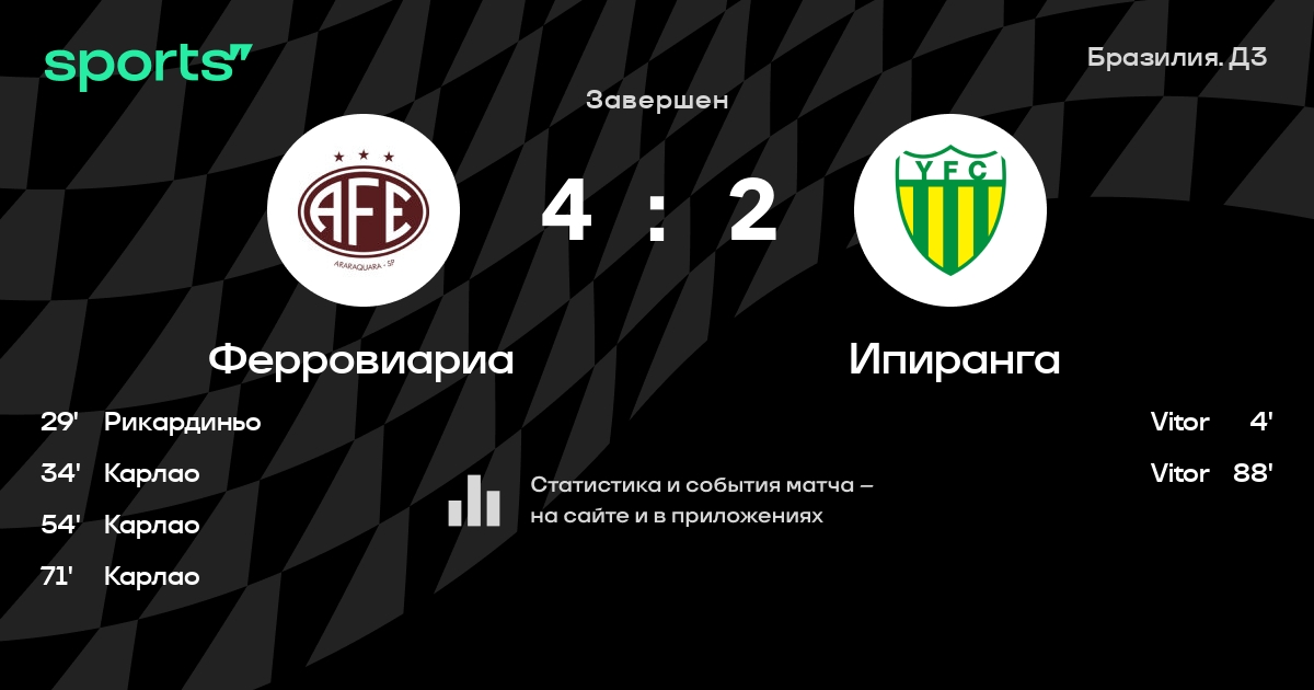 Araújo - da Silva Gomes dos Santos, Фернандо Фонсека, Ambrosio Mendonça, Жедеилсон - de Mello Vianna Pedrosa Galvão, Ушоа, Алиссон - Vitor, Мирандинья, Ribeiro de AraujoЗапасные: Александр, Гильерме Сантос, Виндсон, Лукас Маркес, Моссоро, Oriani Júnior, Матеус Андерсон, Alves de Faria, da Silva Souza, Pereira Lago de Oliveira, Эдсон Кариус