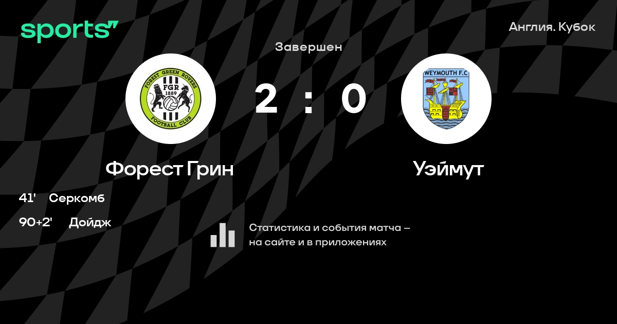 Результат прошлой игры в турнире «Кубок»: Уэймут – Винчестер Сити 3:0. Уэймут не проигрывает в 3 последних матчах в рамках турнира «Кубок». В 3 последних матчах в турнире «Кубок» Уэймут обязательно забивает. В последних 5 играх Уэймут забивает 10 голов. В последних 5 играх Уэймут пропускает 5 голов.
