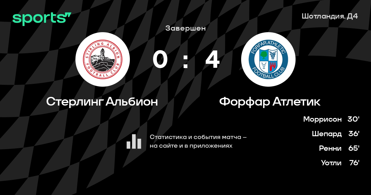 Результат прошлой игры в турнире «Лига 2»: Ист Килбрайд – Стерлинг Альбион 2:0. После 12 туров Стерлинг Альбион набирает 12 очков и занимает 8 место в турнире. Лучший бомбардир команды – R. McLean: он забил 10 в 20 матчах. Стерлинг Альбион не может выиграть в 5 последних матчах в рамках турнира «Лига 2». Стерлинг Альбион пропускает в 7 последних матчах в турнире «Лига 2». В последних 5 играх Стерлинг Альбион забивает 7 голов. В последних 5 играх Стерлинг Альбион пропускает 8 голов.