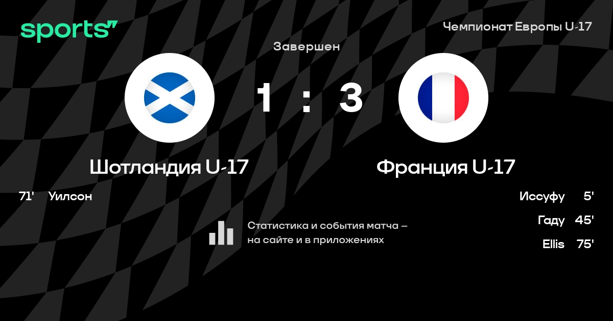 В последних 5 играх Шотландия U-17 забивает в среднем 1.00 гола за игру